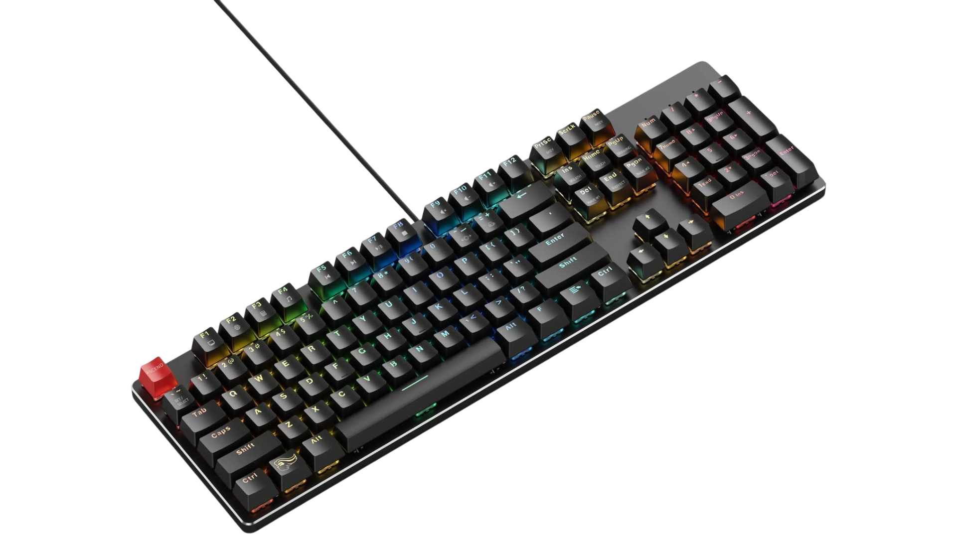 • Double-shot ABS keycaps + RGB per-key backlighting (16.8 M colors) — customizable lighting + clear legends even in low light.