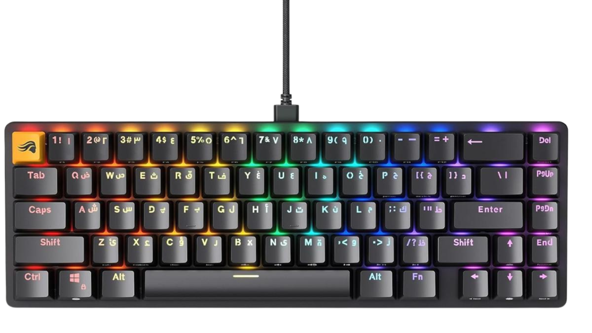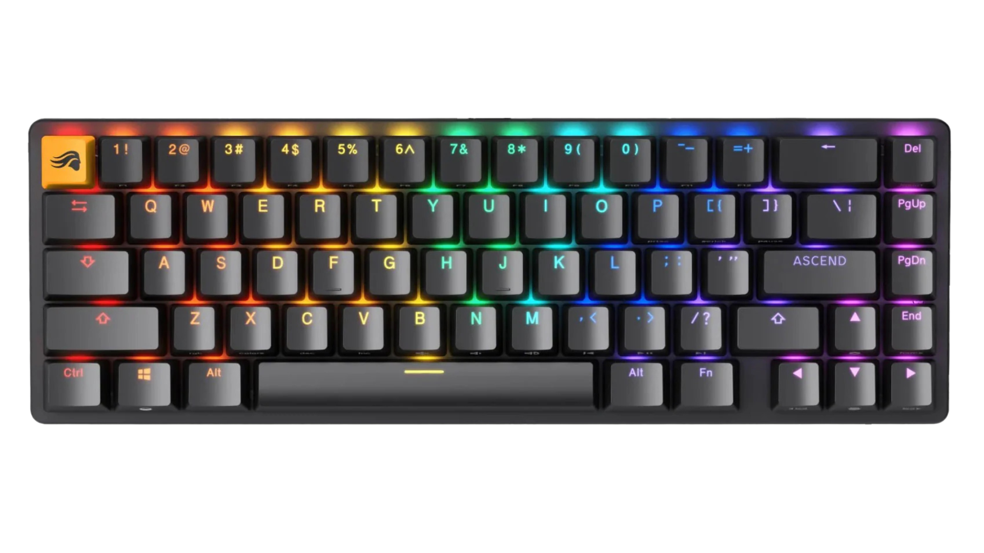 Compact 65% layout (≈ 67 keys) — saves desk space while retaining essential keys like arrows and navigation cluster.
